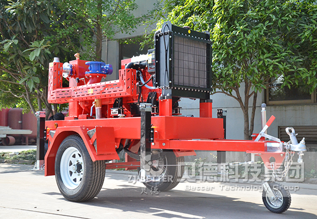 拖車式移動泵車采用軸向回流外混式,并通過泵體、葉輪流道的獨特設計,既可像一般自吸清水泵那樣不需要安裝底閥和灌引水,又可吸排含有大顆粒固體和長纖維雜質液體,廣泛適用于防汛抗旱、市政污水排放、應急排水等領域。