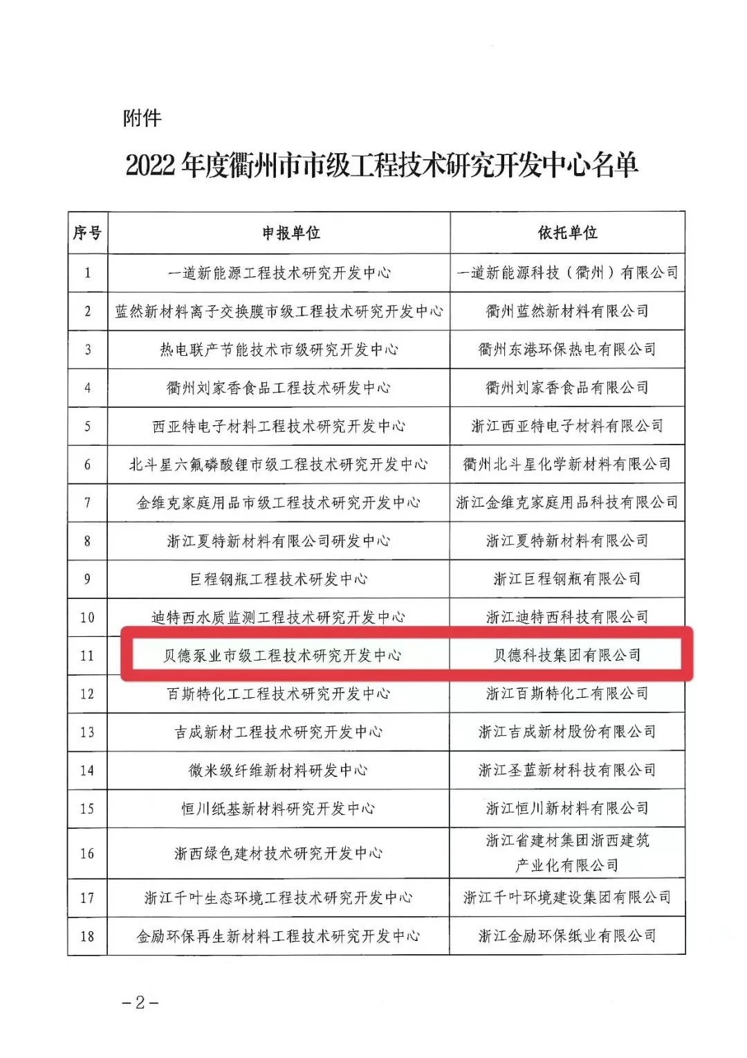 此次獲批市級工程技術研發開發中心,為貝德科技集團進一步科技創新、高質量發展蓄勢注能,也為貝德泵業工程技術研發中心申請浙江省研發中心打下基石。