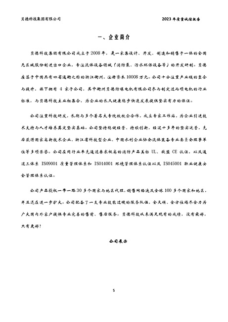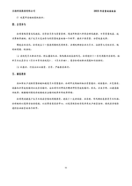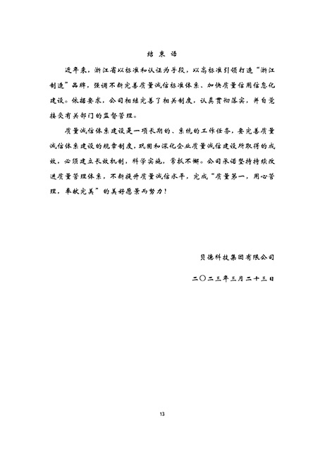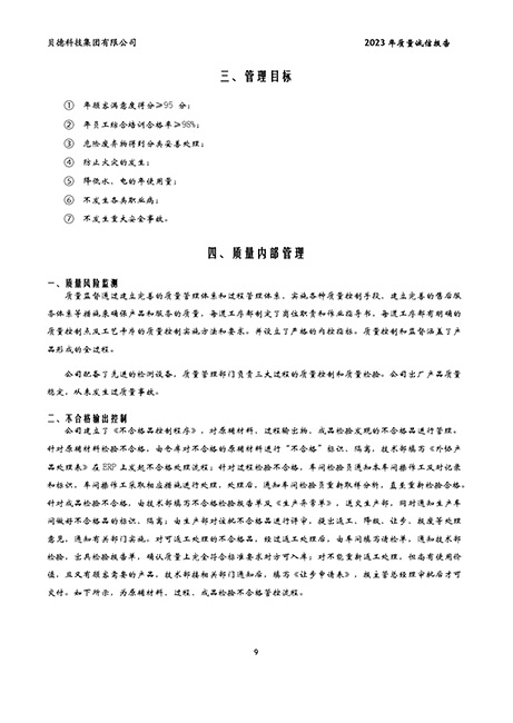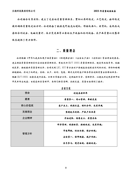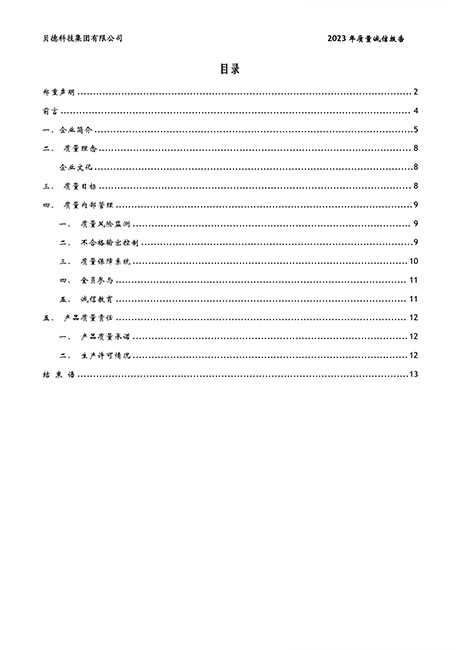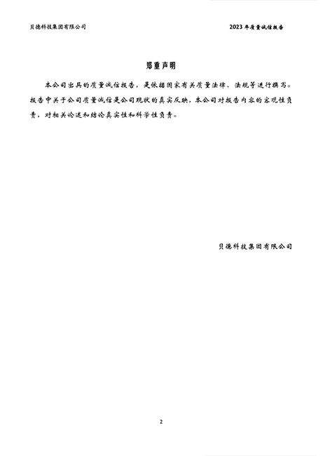貝德科技集團(tuán)2023質(zhì)量誠信報告