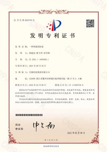 農(nóng)歷虎年春節(jié)剛過,就連連傳來喜訊,公司去年6月9日和8月30日申報的兩項發(fā)明專利,歷時半年多,經(jīng)過材料審查和審查員授權(quán),智能消防泵于2022年2月8日被授予了發(fā)明專利證書,專利號為:ZL 2021 1 1003928.1;節(jié)能型變?nèi)荼糜?022年2月11日被授予了發(fā)明專利證書,專利號為:ZL 2021 1 0641247.1
