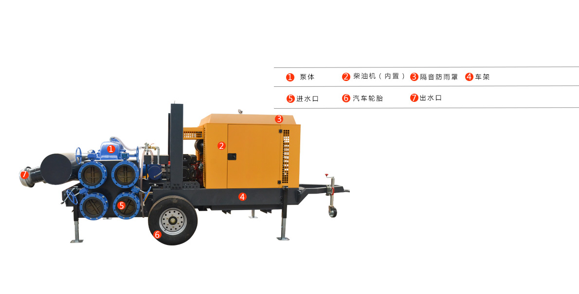 1) 柴油水泵機組:柴油機、水泵、聯軸器、冷卻風扇、散熱水箱、鋼結構底座(含機底油箱80-120L)、蓄電池及聯結導線、排氣消聲器、控制屏等。