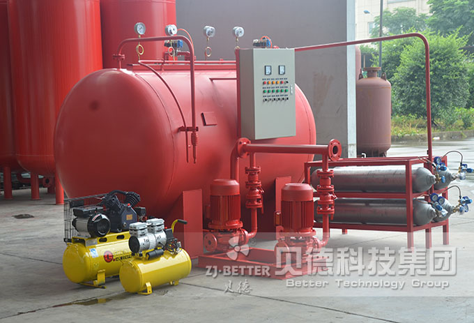 來自內蒙古赤峰市的氣體定壓設備的客戶,采購的消防氣頂設備今日已順利裝車,該套設備由消防泵、消防泵控制柜、氣壓水罐及鋼瓶架子、氣瓶配件及減壓表、連接管、不銹鋼磁翻板液位計、補氣空壓機、氣動閥門空壓機等部件組成,10min內消防供水量。該設備還能與消火栓、消防按鈕、煙霧報警、溫度及壓力等信號進行并聯,以控制消防泵設備。